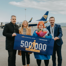 Ryanair, najväčšia letecká spoločnosť v Európe, dnes oslávila míľnik pol milióna prepravených cestujúcich v Košiciach uvedením letného letového poriadku, ktorý ponúka 5 vzrušujúcich liniek: do Dublinu, Liverpoolu, Prahy, Londýna (letisko Stansted) a úplne novej destinácie - Zadar.