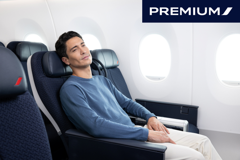 Na diaľkových letoch si užite komfort Premium na spánok, čítanie alebo prácu vo svojom voľnom čase. Táto trieda vám zaručuje pokoj, ticho a dodatočný priestor.