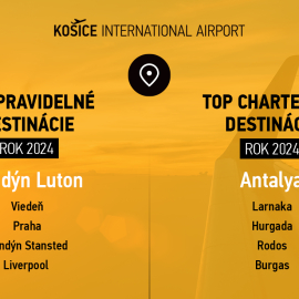 Vyše 474 tisíc cestujúcich využilo pravidelné linky do jednej (či viacerých) z deviatich destinácií: Dublin, Liverpool, Londýn Luton, Londýn Stansted, Praha, Varšava, Viedeň, Zadar, Zürich. Na pravidelných linkách boli najvyťaženejšími destináciami Londýn Luton, Viedeň a Praha. Ďalších, vyše 261 tisíc cestujúcich letelo z resp. do Košíc na charterových letoch. Počas rekordnej dovolenkovej sezóny boli najpopulárnejšími destináciami Antalya, Larnaca a Hurghada. Počet cestujúcich na charterových letoch medziročne vzrástol až o 32 %.