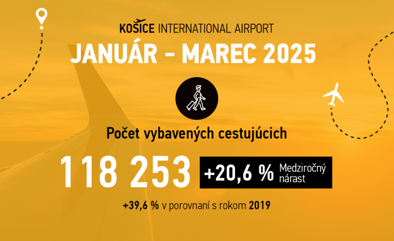 Po najúspešnejšom roku vo svojej histórii pokračuje Letisko Košice v prekonávaní rekordov aj v roku 2025. Za prvý štvrťrok prešlo jeho bránami 118 253 cestujúcich, čo predstavuje medziročný nárast o 20,6 %. Takisto tohtoročný marec bol najúspešnejším v histórii letiska s 41 104 vybavenými cestujúcimi. To je o 16,7 % viac ako v marci 2024.